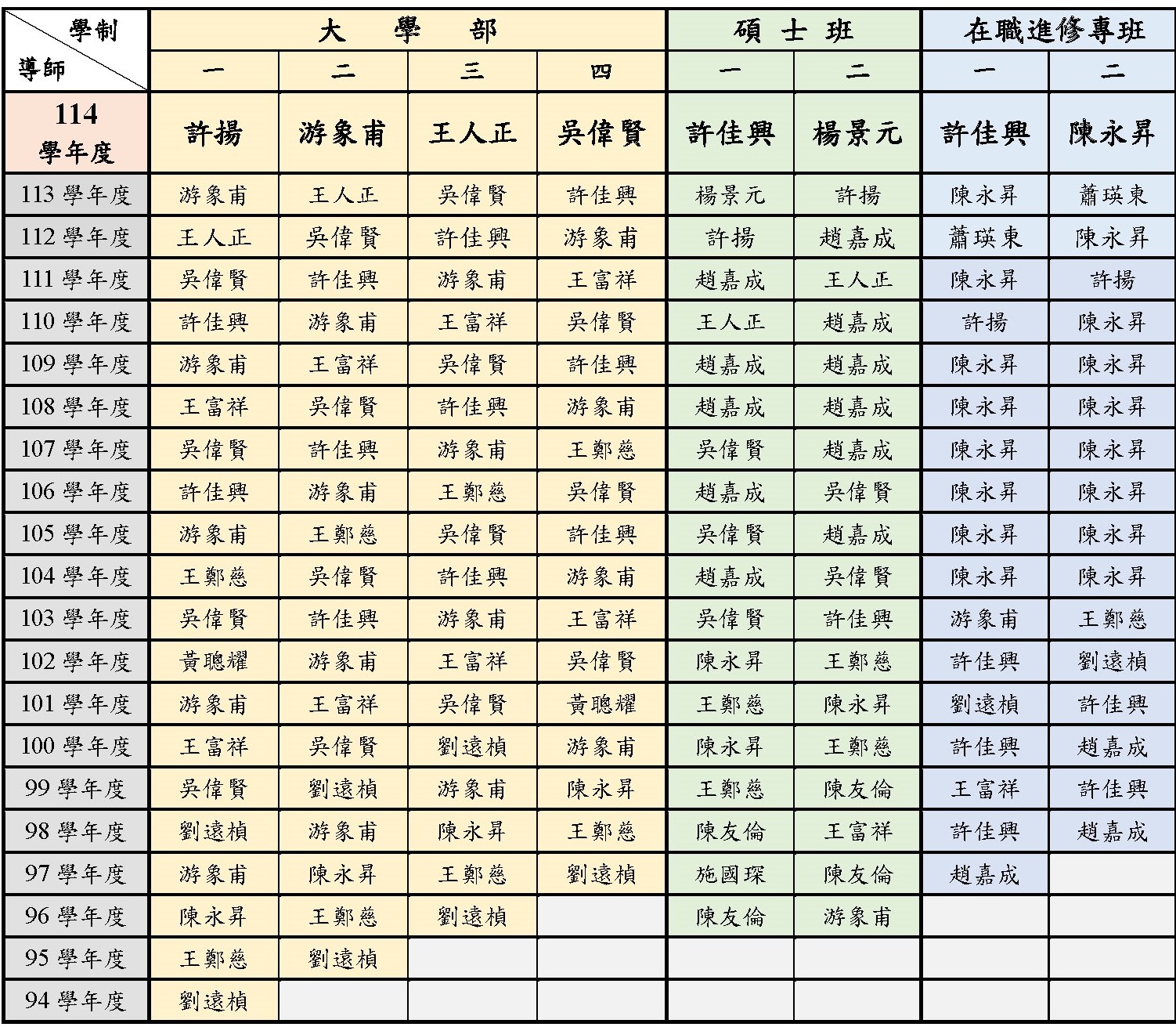 資訊科學系 各班導師